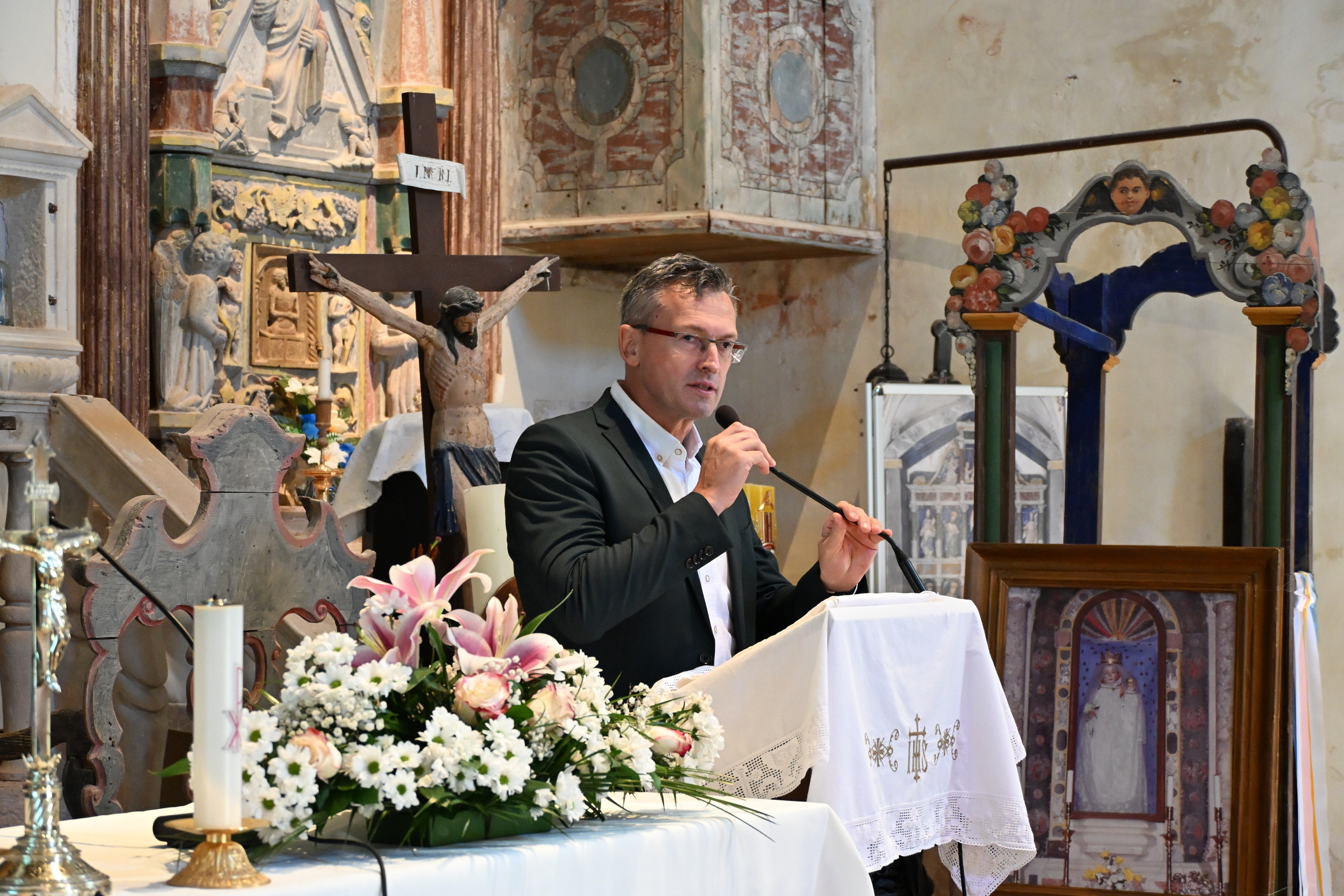 Županijski pročelnik Vladimir Torbica pročitao je pismo predsjednika Skupštine Regije Veneto, Roberta Ciambettija, u kojem je ovaj izrazio žaljenje što danas nije mogao biti u Mutvoranu. Ciambetti se pritom osvrnuo na izvrsnu i dugogodišnju suradnju između Istarske županije i Regije Veneto, koja je rezultirala brojnim projektima na području kulture i umjetnosti.Potpisani i datirani impozantni dvokatni glavni oltar mutvoranske župne crkve djelo je Paola Campsa de Bobotija, jednoga od najvažnijih venecijanskih renesansnih drvorezbara. Izuzetno bogata i uspješna produkcija njegove radionice može se pratiti od 1497. do 1534. godine. Sudeći prema potpisanim i pripisanim djelima te opsežnim arhivskim podacima, Campsa je imao velik broj suradnika, a procjenjuje se da je u tom dugom razdoblju u radionici moglo biti izrađeno čak 185 oltarnih cjelina. Skupocjeni oltari isporučivani su naručiteljima diljem Mletačke Republike, a u velikom se broju kao naručitelji javljaju i pojedinci i vjerske zajednice duž istočnojadranske obale.